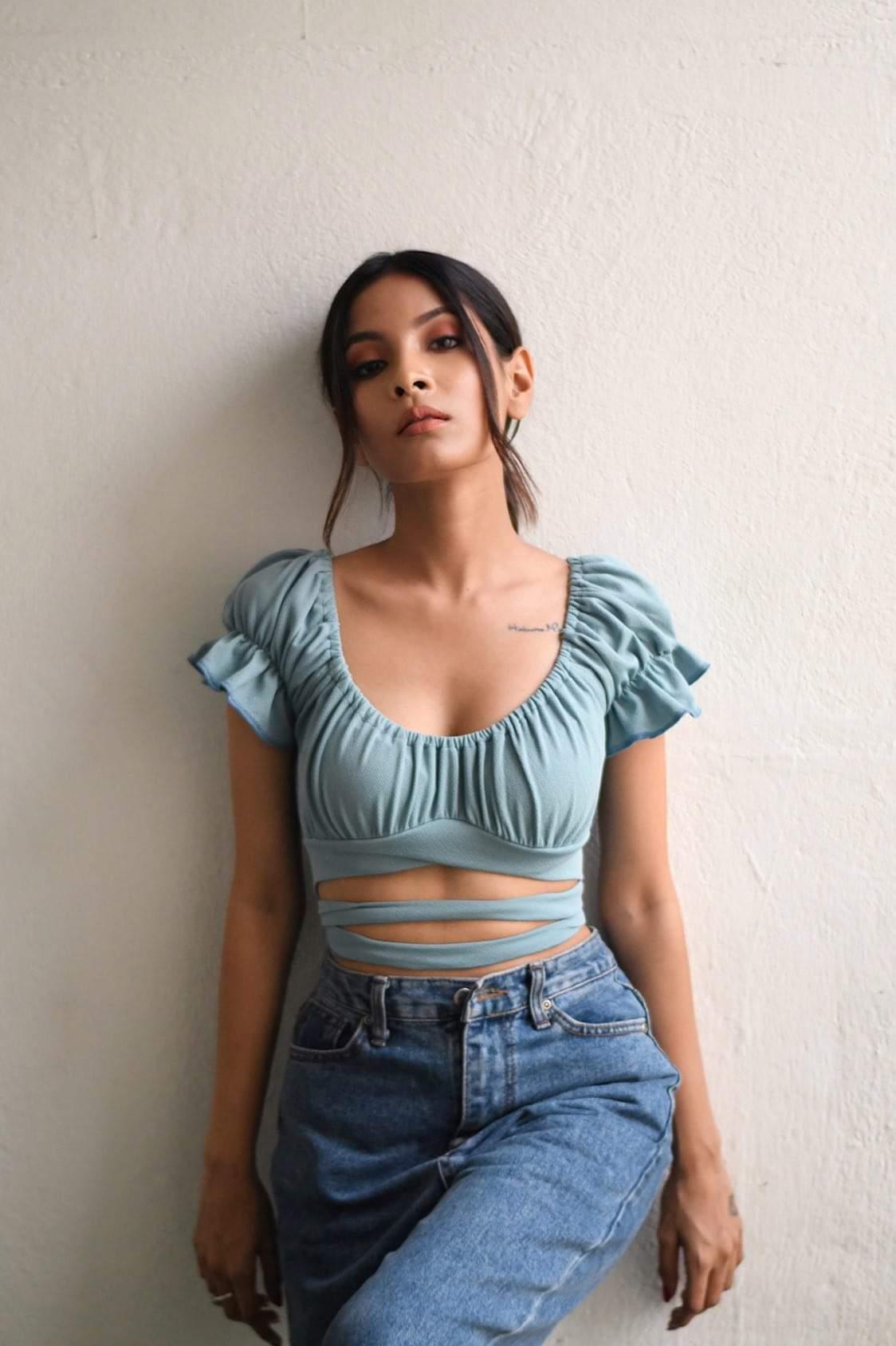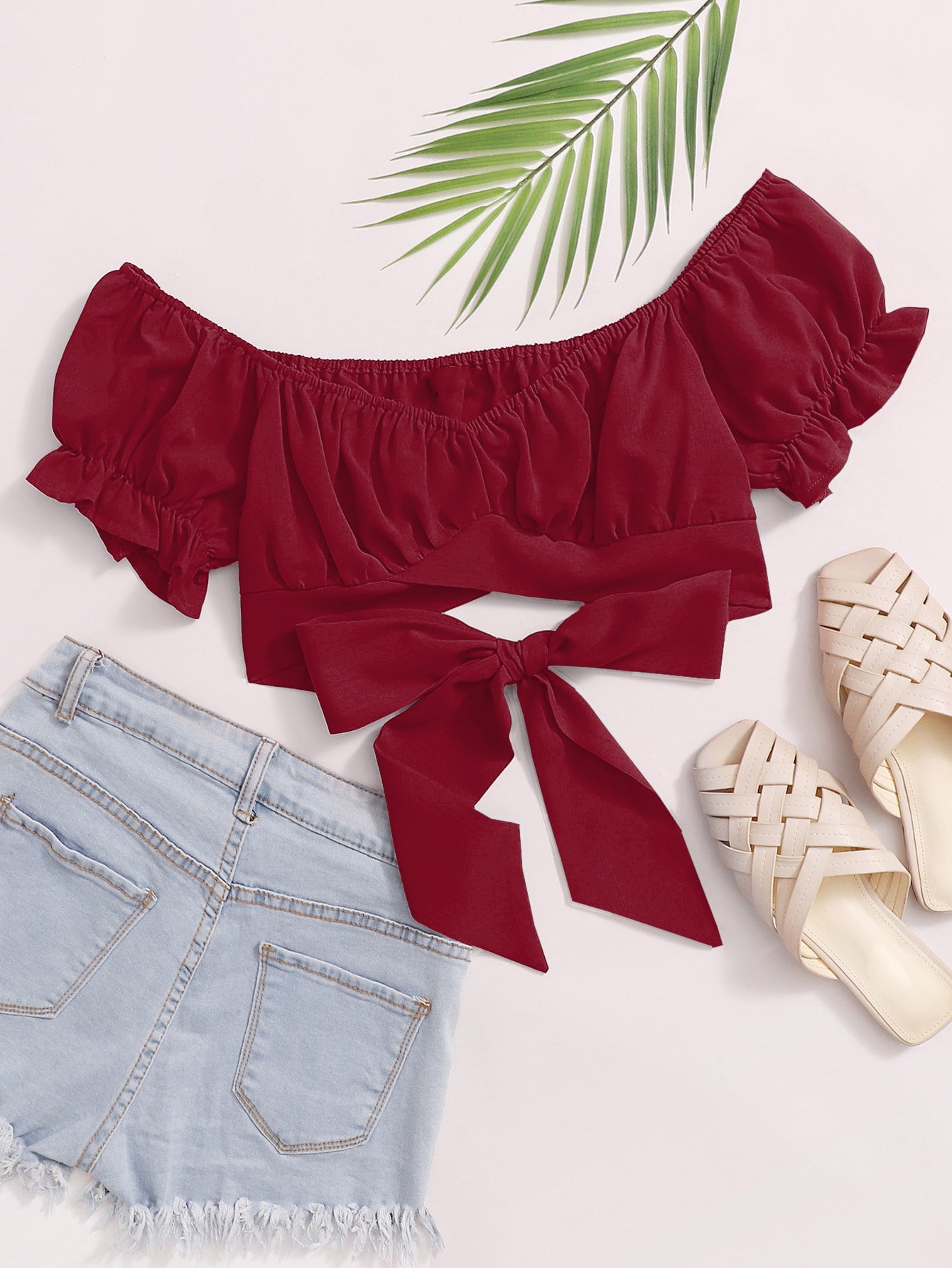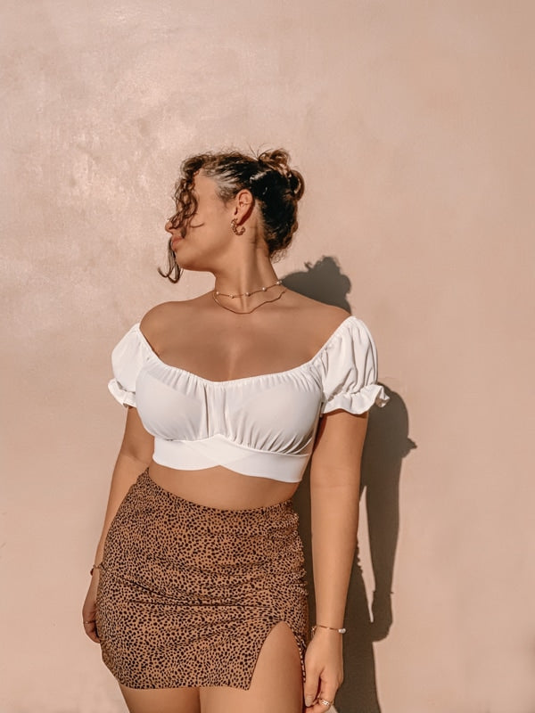 AVIV TIED HEM PUFF SLEEVE CROP TOP